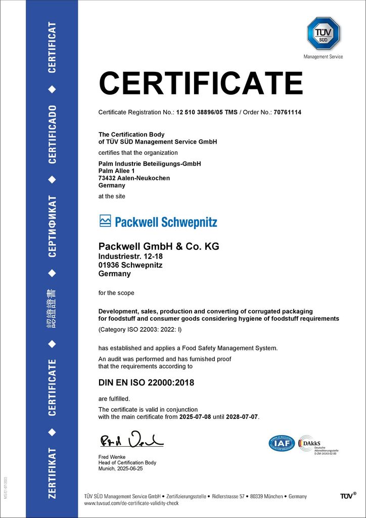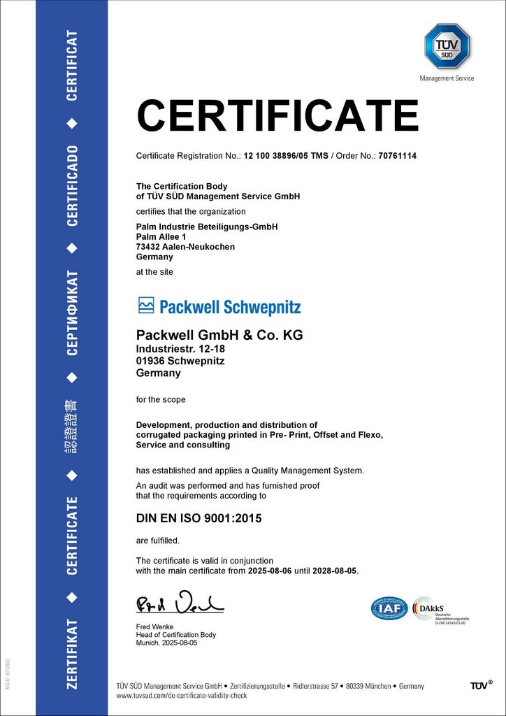 High-quality packaging is produced since 1994 in the Saxony town of Schwepnitz near Dresden. Machines and infrastructure of the plant are continuously upgraded and expanded. Packwell Schwepnitz is one of the most advanced and productive packaging plants in Germany.